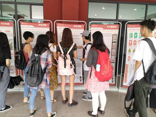 在活动现场,我院安防小组成员通过展示消防安全知识展板、发放实验室安全知识宣传页、发放安全知识宣传视频及相关资料、组织师生进行现场学习等方式,向广大师生宣传安全知识和实验室安全事故的应急处置技能。