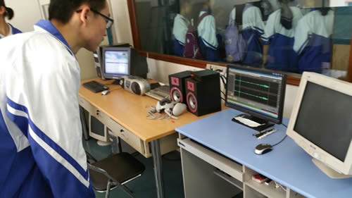 2016年4月20日14:00,为了进一步了解四川大学外国语学院的教学环境和设施,北师大成都实验中学初2013级直升年级师生共180人,在外国语学院师生的带领下参观了外国语学院江安校区语音实验室。此次参观活动是四川大学校园开放日系列活动的一部分,旨在加强各中学师生对我校的了解。